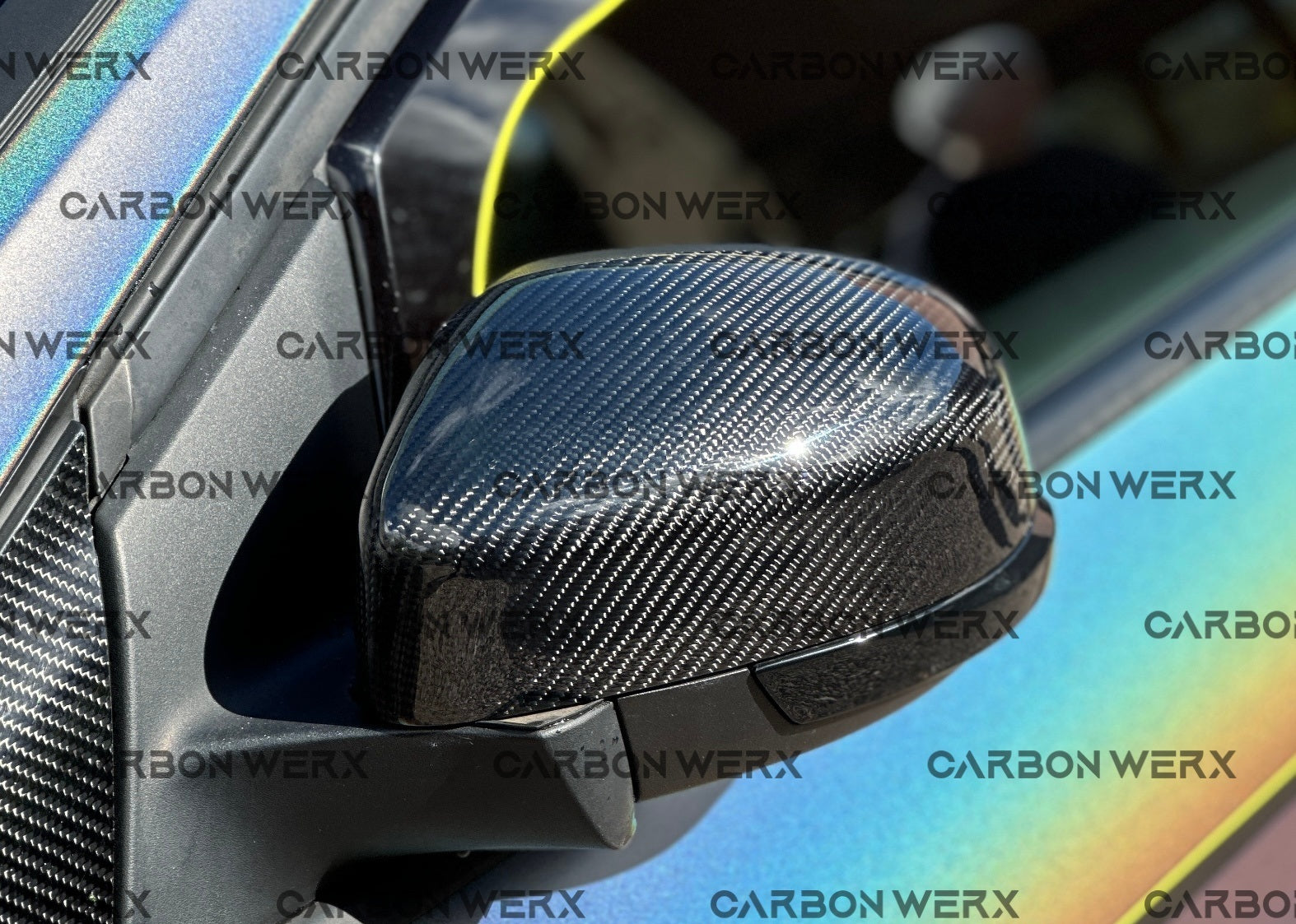 Mirror caps are one of the most visible exterior upgrades. These carbon fibre replacements add an immediate premium, performance-inspired finish.