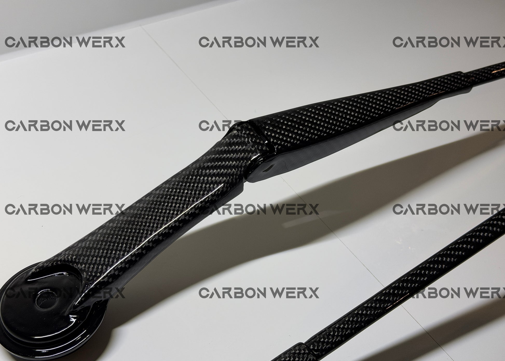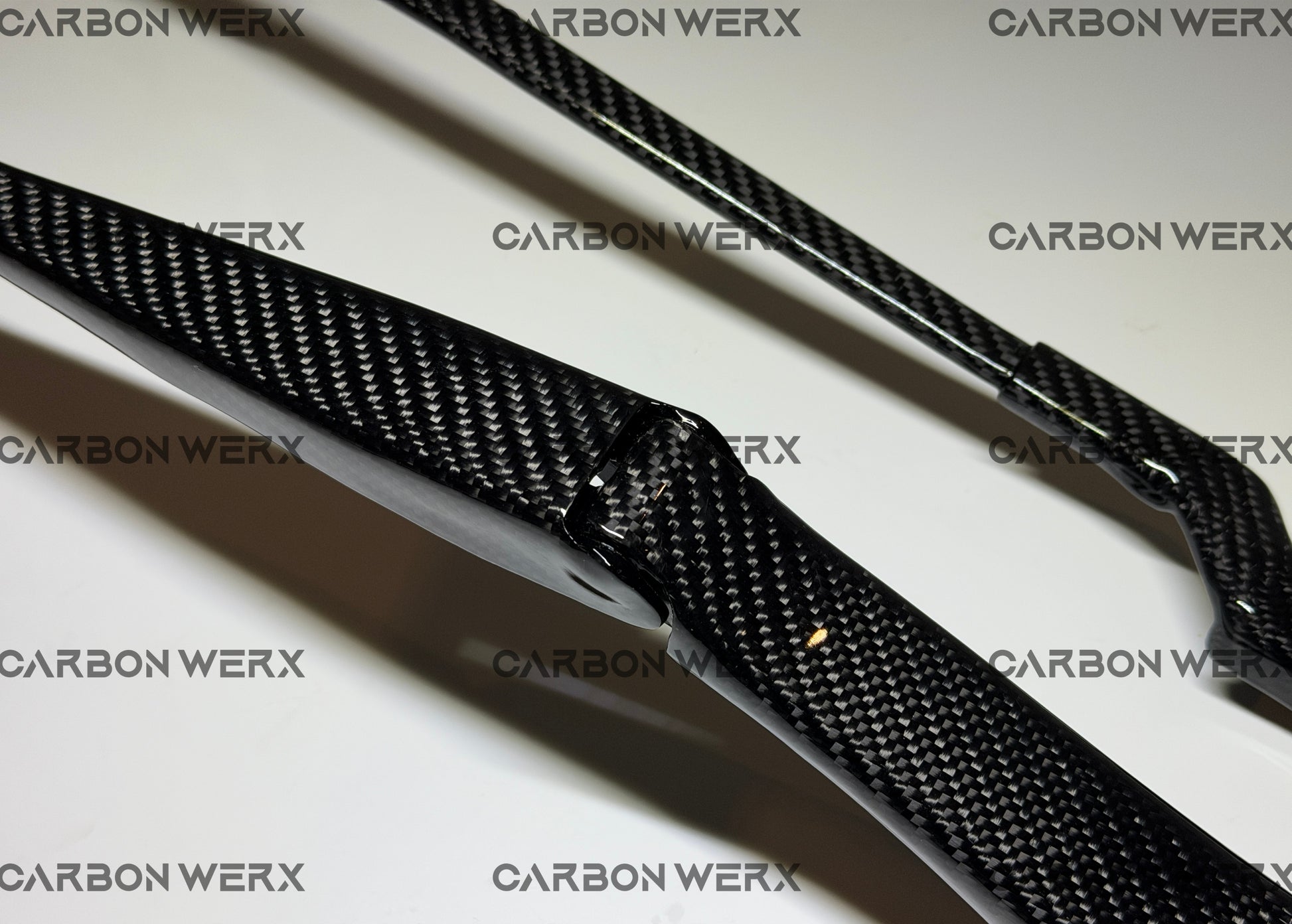 Genuine carbon fibre skinned metal wiper arms — a rare, premium upgrade you won’t find anywhere else.